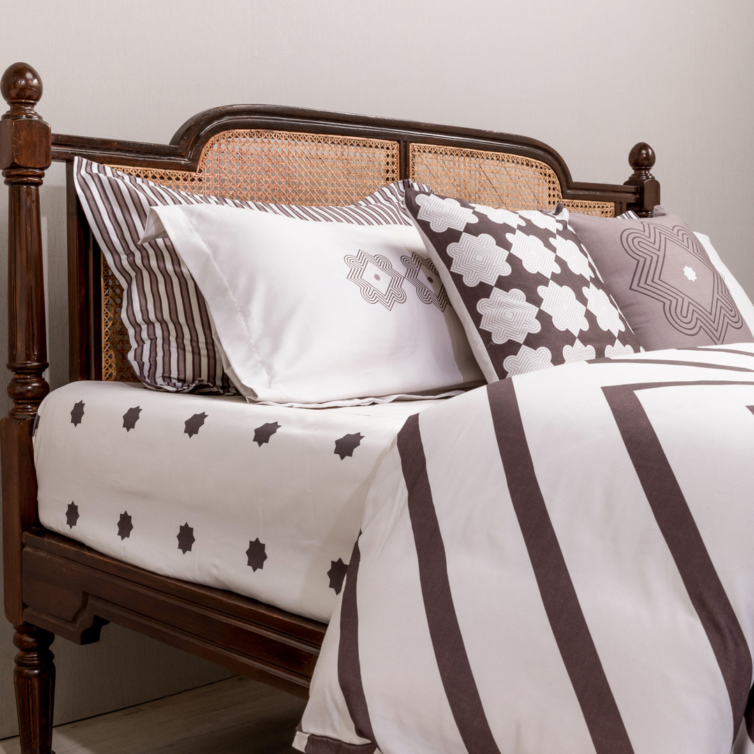 A paradise of eclecticism that echoes with the ambient sounds of the iktara. Bed linen featuring bold and delicate notes that come together to create a merry melody of colours.